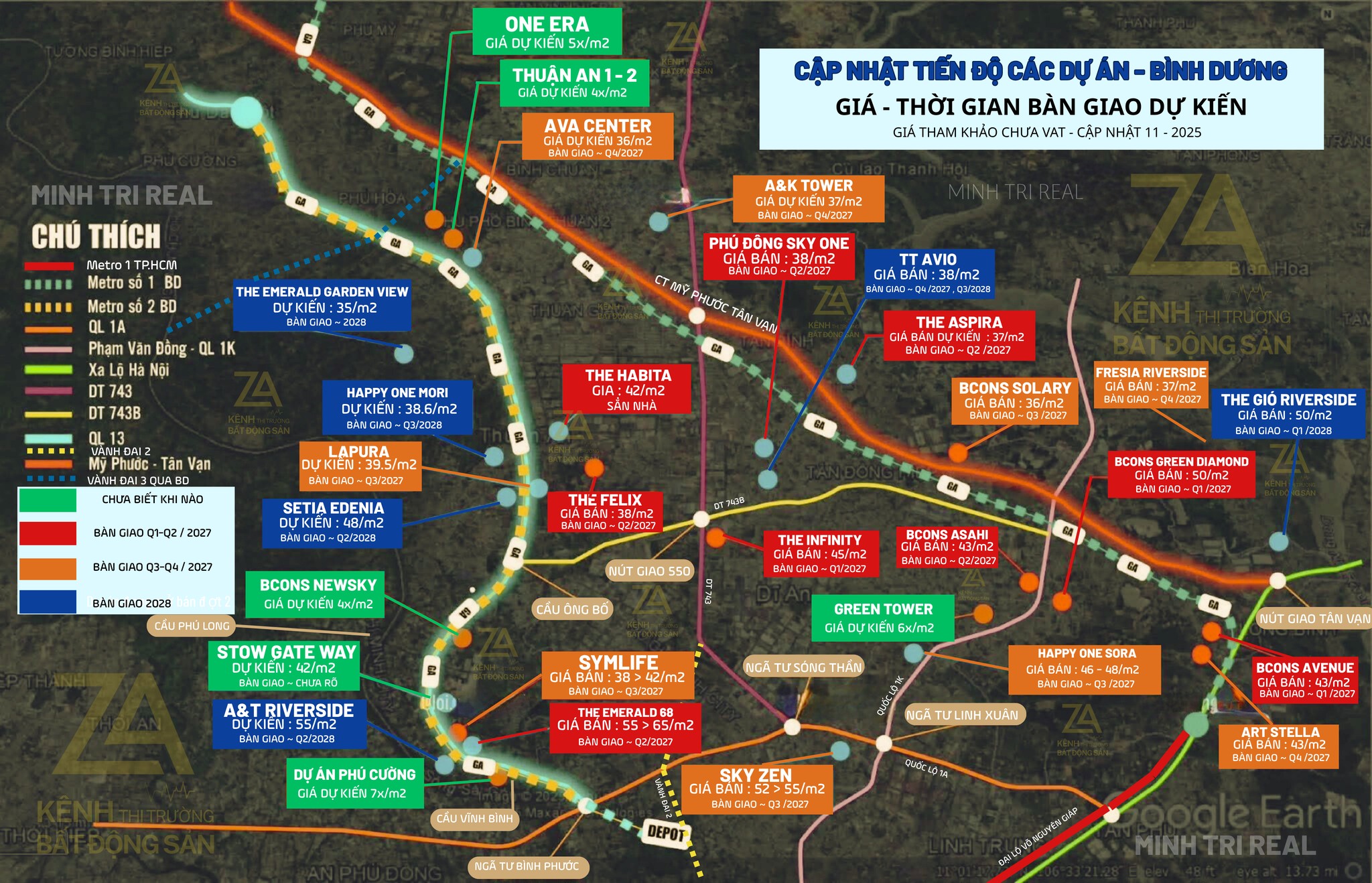 📍 Các dự án bàn giao cuối 2027 chủ yếu nằm tại trục Thuận An – Tân Đông Hiệp, giáp Vành đai 3. Đây là khu vực được hưởng lợi lớn khi hạ tầng và Metro số 1 kéo dài về Bình Dương bắt đầu định hình.
